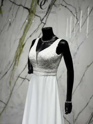 Corsage : Orné d’une dentelle fine et délicate.