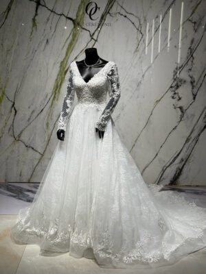 La robe Etna est l’incarnation du raffinement. Avec son allure romantique et chic, cette création en satin duchesse offre une silhouette d’une élégance absolue, idéale pour une mariée en quête de distinction.