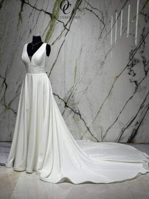 Encolure : Col en cœur classique qui souligne élégamment le port de tête.
