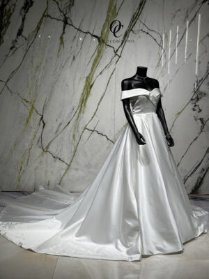 Traîne : Une très jolie traîne fluide qui accompagne la marche avec élégance.