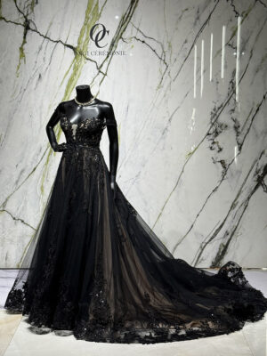 Traîne : Une très jolie traîne légère qui accompagne la marche avec élégance.
