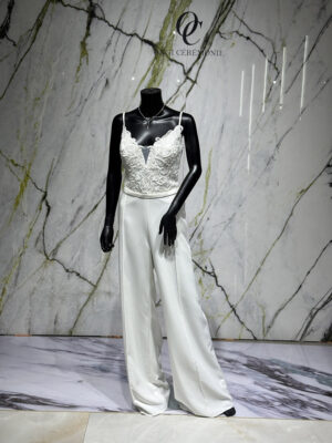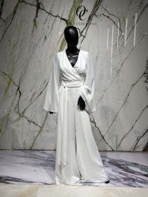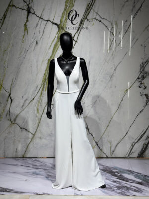 La veste Vieste est un accessoire de finition raffiné, conçu pour compléter harmonieusement une robe de mariée tout en apportant une touche de sophistication supplémentaire. Elle est idéale pour les mariées souhaitant habiller leurs épaules avec délicatesse lors de la cérémonie.